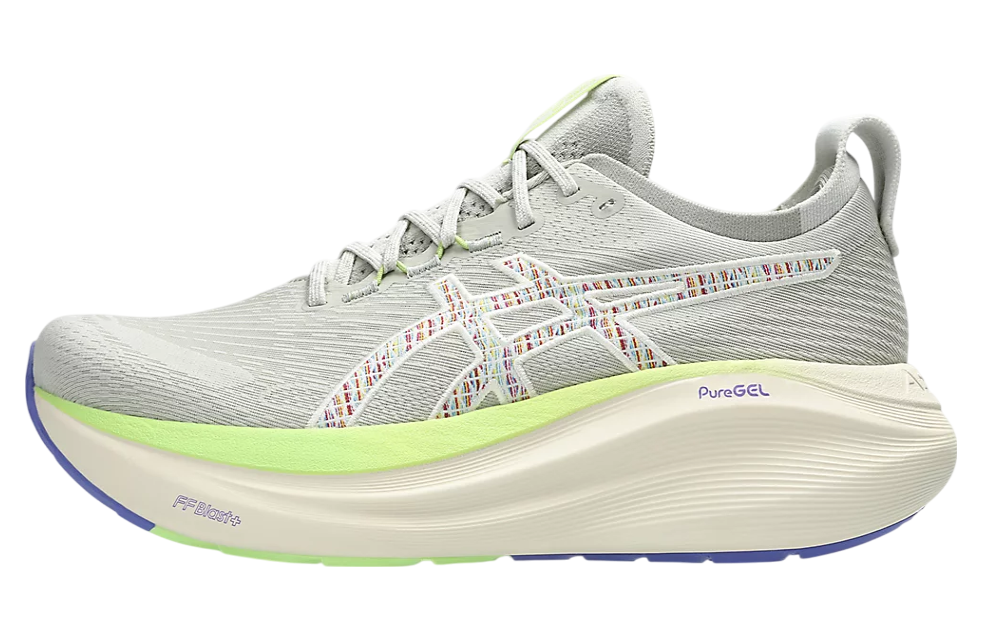 The Asics Gel-Nimbus 27 TR in the colorway Nature Bathing Nature Bathing / Lime Green is a striking addition to the brand's celebrated line of running shoes, designed specifically to bring comfort and performance together in a seamless experience. This iteration advances the legacy of the Gel-Nimbus line by infusing cutting-edge technology aimed at enhancing cushioning and support. The shoe is tailored for runners who crave superior comfort and stability, featuring advanced materials that increase breathability and adaptability to different terrains. The Nature Bathing color scheme not only adds an aesthetic appeal with its calming lime green hues but also aligns with Asics' ongoing commitment to producing sustainable performance footwear. This colorway evokes the serene and harmonizing effect of nature, offering an immersive running experience that's physically grounding.